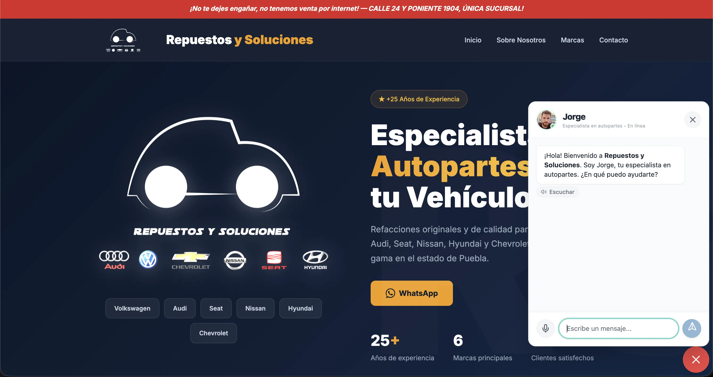 Landing page with a smart self-made AI Bot for customer support and product recommendations.