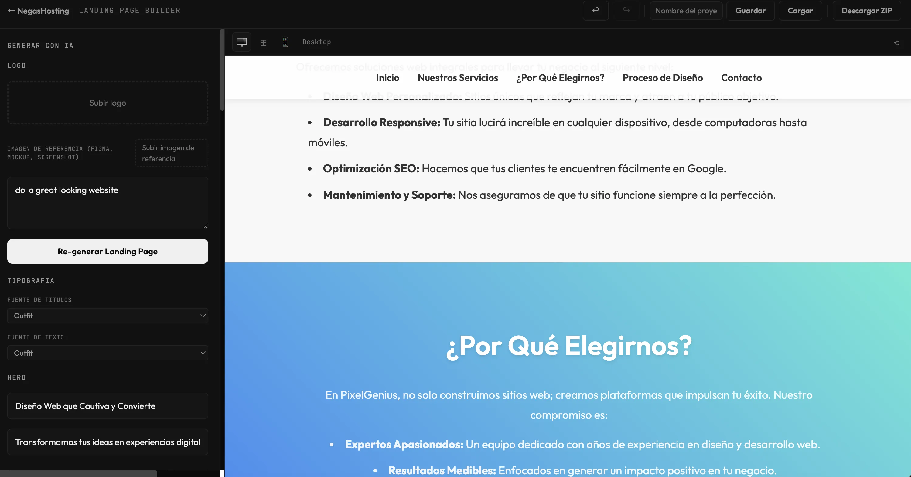 NegasHosting Page Builder